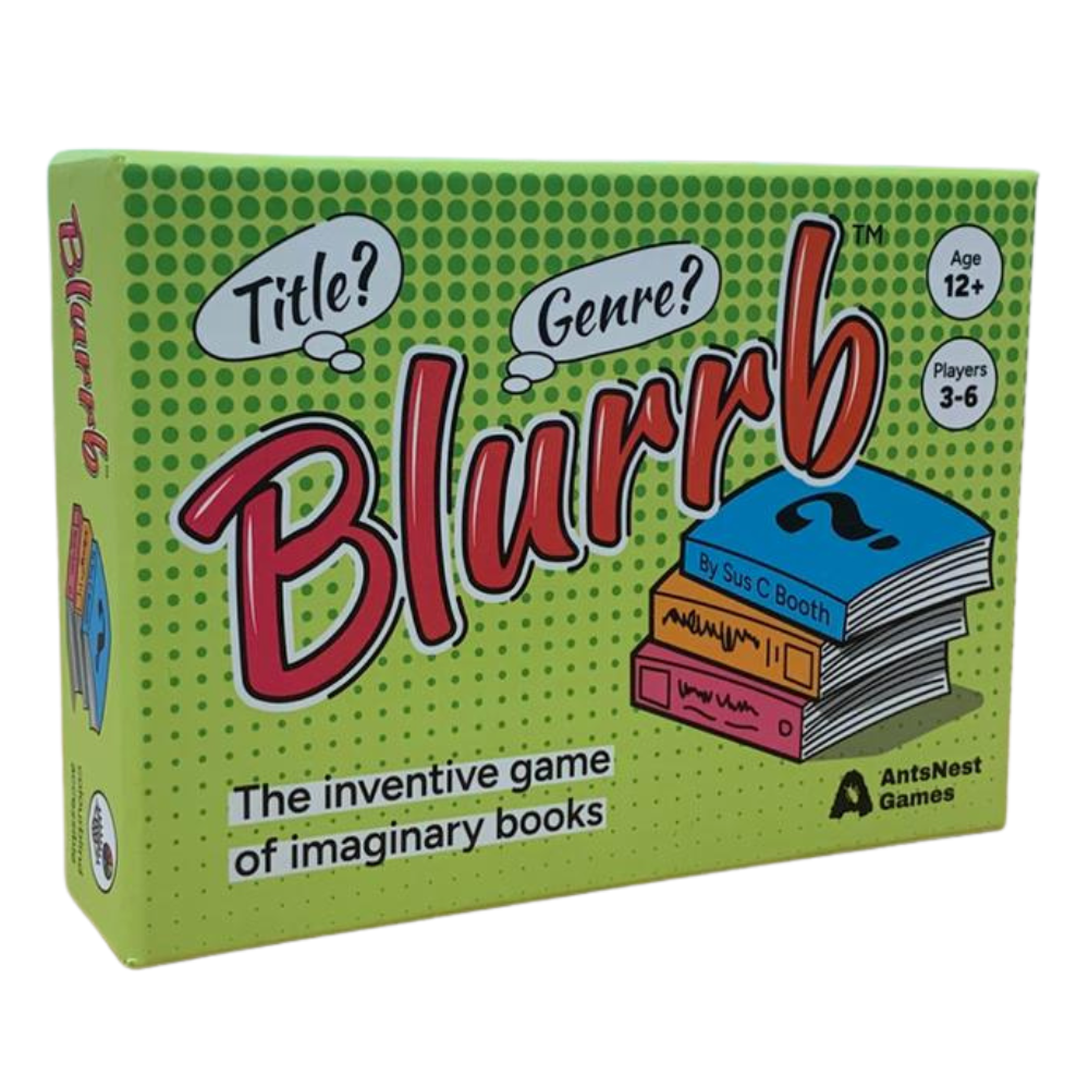 Each round a GENRE card is revealed and each player receives random TITLE and BLURRB cards. After a turn of swapping cards, the players write a title and summary for their imaginary book using the TITLE and BLURRB cards.